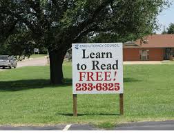 The ‘End Literacy Council’ erected a sign, “Learn to read FREE! 222-6325.”